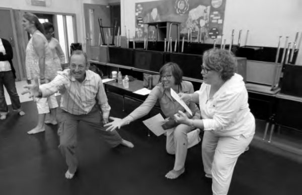 Alexander Bernstein and educators from Hillcrest Community School (MN) use text from "Something’s Coming" to create a collaborative dance. Photo by Peter Slansky.