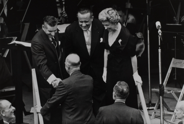 Photo: Leonard Bernstein, President Eisenhower, Leonard Warren, and Rise Stevens at the Lincoln Center ground-breaking ceremony, May 14, 1959. New York Times, courtesy of the NY Phil Shelby White & Leon Levy Digital Archives